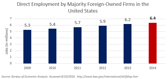 Graphic on Direct Employment by Majority Foreign-Owned Firms in the United States.